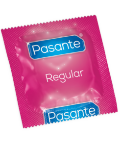 Pasante Regular condoms have a slight tapered shape for a natural feel. Soft, natural-colored and with a teat tip.