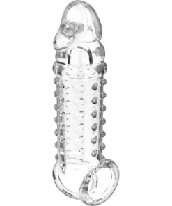 Fulfill exciting fantasies when you slide your penis into the sheath and your scrotum into the strap. Once this extension sleeve is secured, you will have more length and girth to play with full support.
