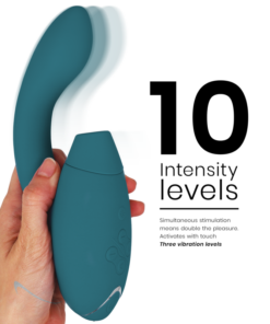 The vibrations and air pulsations are controlled separately and easily via soft-touch buttons on the top of the stimulator head. With the Smart Silent mode, the DUO 2 will only turn on when in direct contact with your skin, keeping the already quiet rumbles even quieter. With the Afterglow feature, press the power button briefly after climax, bringing the intensity of the DUO 2 down to level 3 for a relaxing finish. Made with boy-safe silicone, the DUO 2 is waterproof so you can extend playtime into the bath or shower! Always use a water-based lubricant with the DUO 2 and remember to clean it with a toy cleaner before and after every use. Take your orgasms to the next level with the Womanizer DUO 2 dual stimulator!
