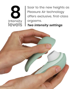 The Womanizer Liberty 2 is an air pressure vibrator. When you place the cap around your clitoris, it is massaged with Womanizer’s patented Pleasure Air technology. This means that air pressure waves massage the clitoris. You feel a slight vacuum, a suction effect, and at the same time, air pressure pulsations. It actually feels like it’s sucking on your clitoris.